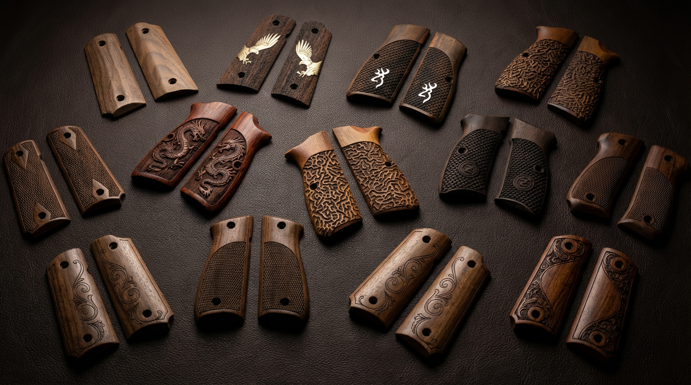 We strictly use high-grade, dense hardwoods such as Turkish Walnut, Rosewood, and exotic burls. Each grip is unique; the natural grain patterns ensure that no two pieces are exactly alike, giving your firearm a truly one-of-a-kind identity.