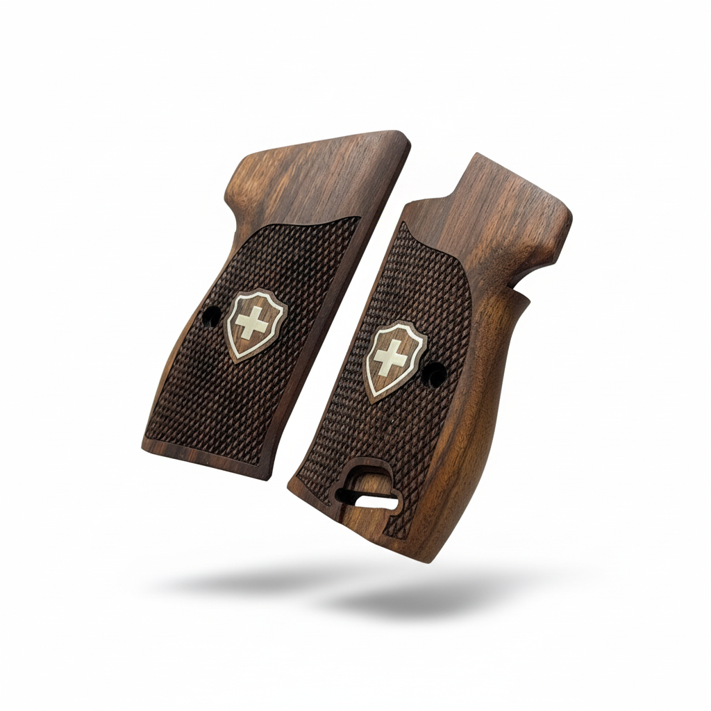 We strictly use high-grade, dense hardwoods such as Turkish Walnut, Rosewood, and exotic burls. Each grip is unique; the natural grain patterns ensure that no two pieces are exactly alike, giving your firearm a truly one-of-a-kind identity.