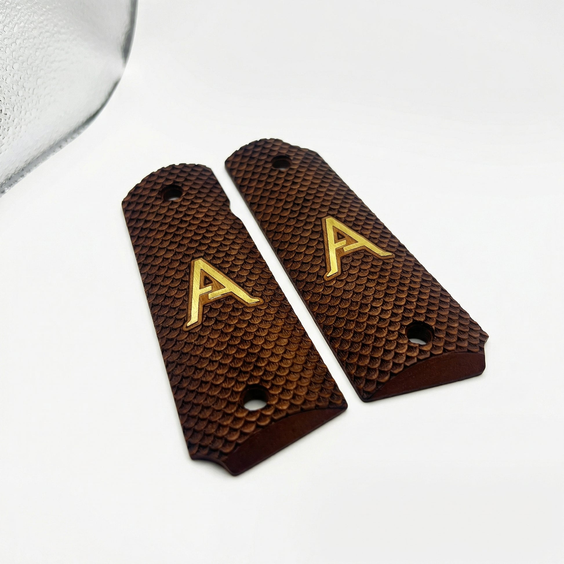 1911 Full Size Grips - FishScale Texture - Personalized Gold Initial