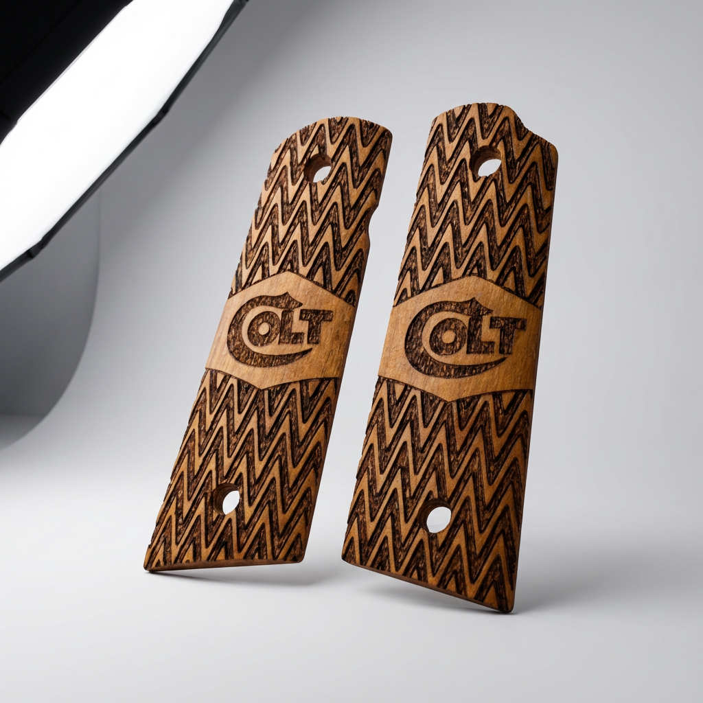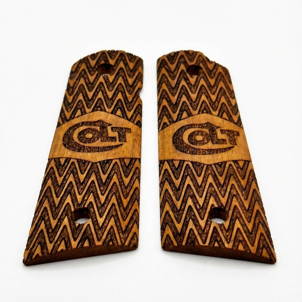 We strictly use high-grade, dense hardwoods such as Turkish Walnut, Rosewood, and exotic burls. Each grip is unique; the natural grain patterns ensure that no two pieces are exactly alike, giving your firearm a truly one-of-a-kind identity.