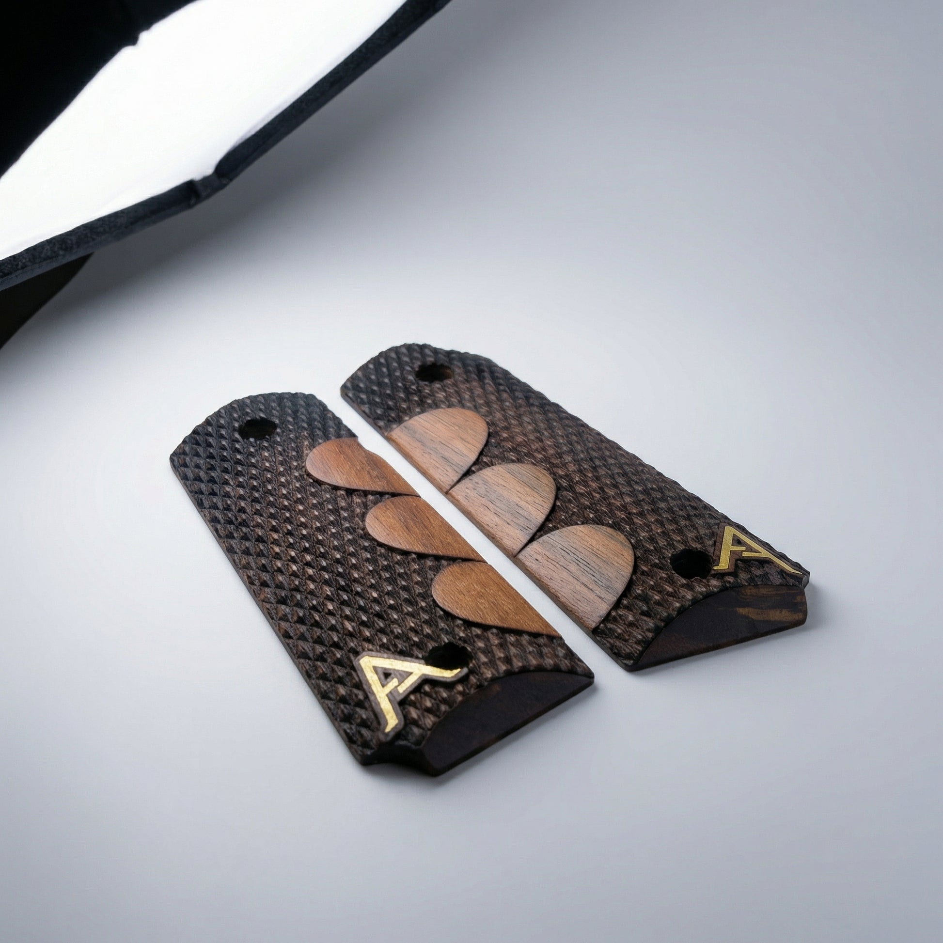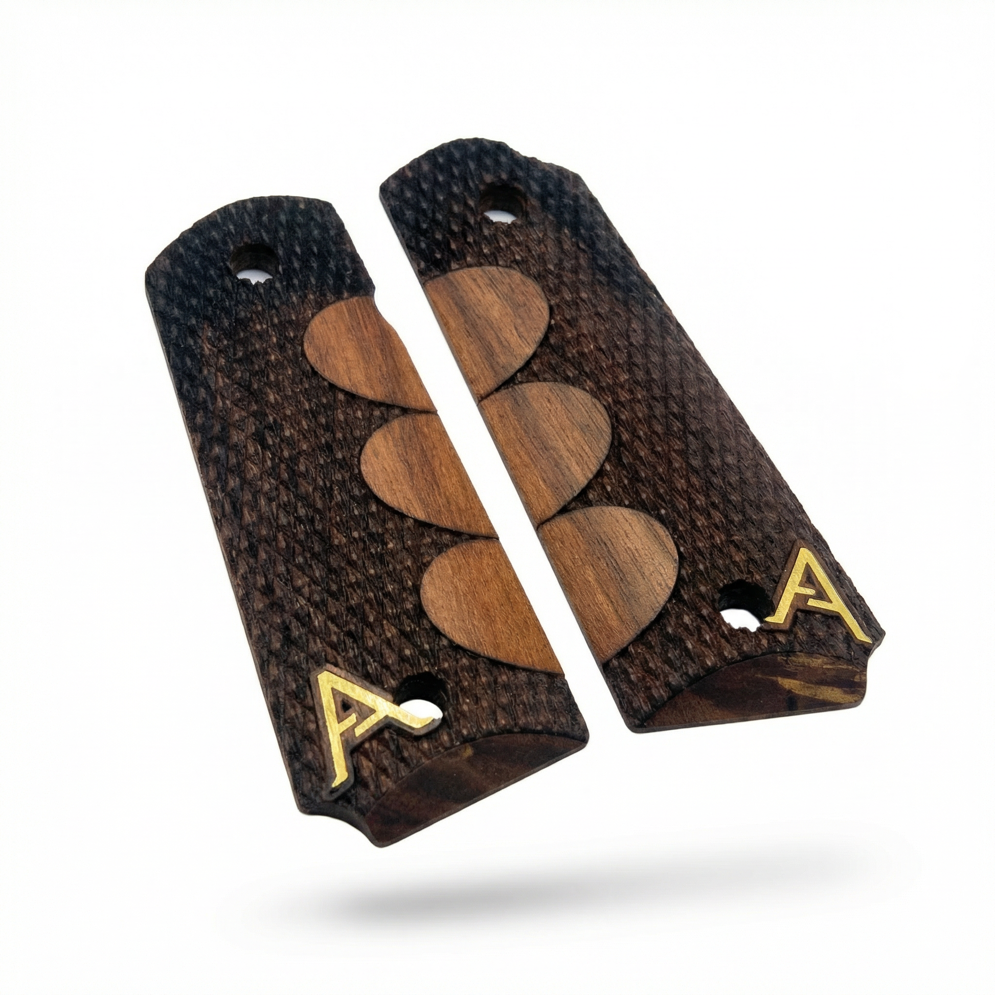 We strictly use high-grade, dense hardwoods such as Turkish Walnut, Rosewood, and exotic burls. Each grip is unique; the natural grain patterns ensure that no two pieces are exactly alike, giving your firearm a truly one-of-a-kind identity.
