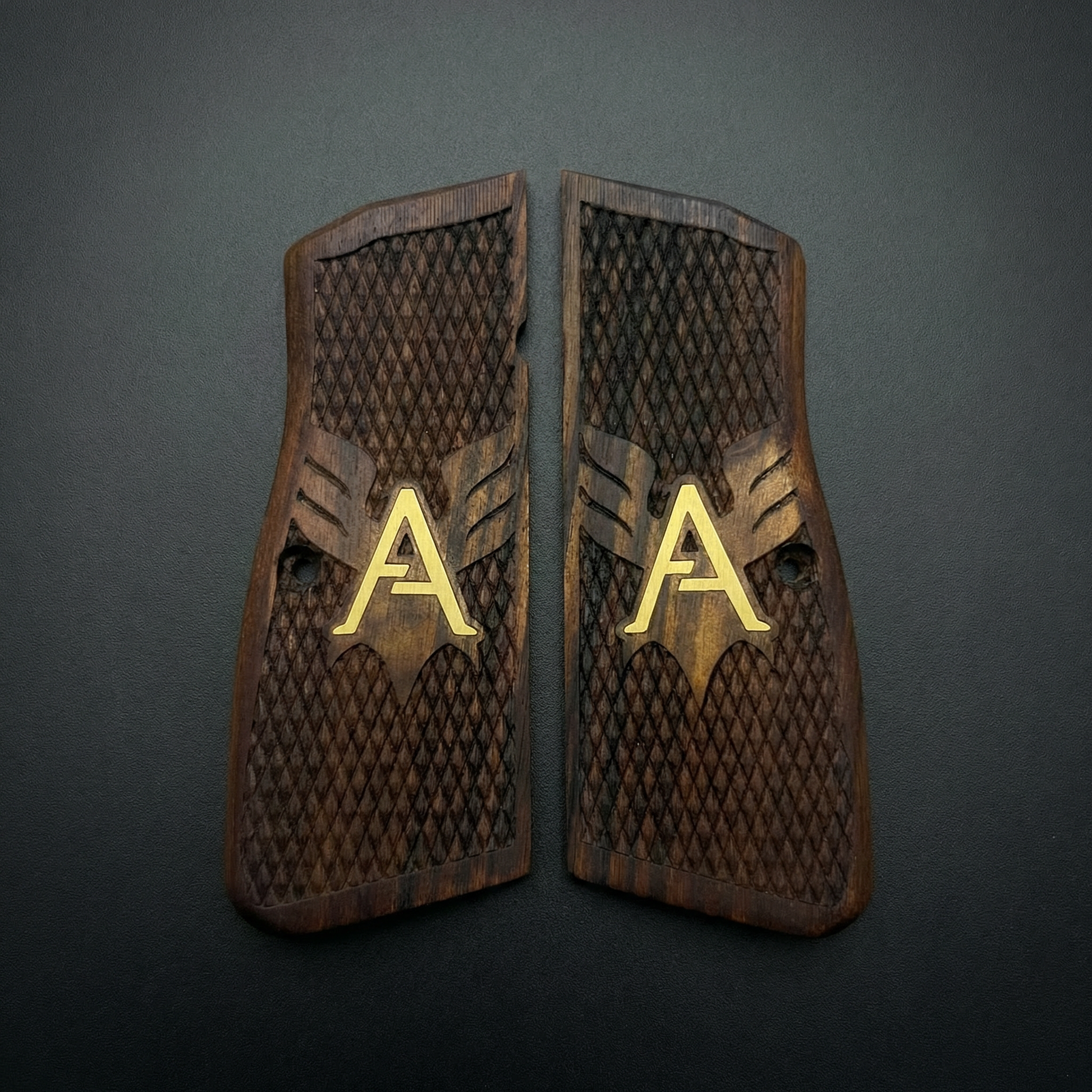 We strictly use high-grade, dense hardwoods such as Turkish Walnut, Rosewood, and exotic burls. Each grip is unique; the natural grain patterns ensure that no two pieces are exactly alike, giving your firearm a truly one-of-a-kind identity.
