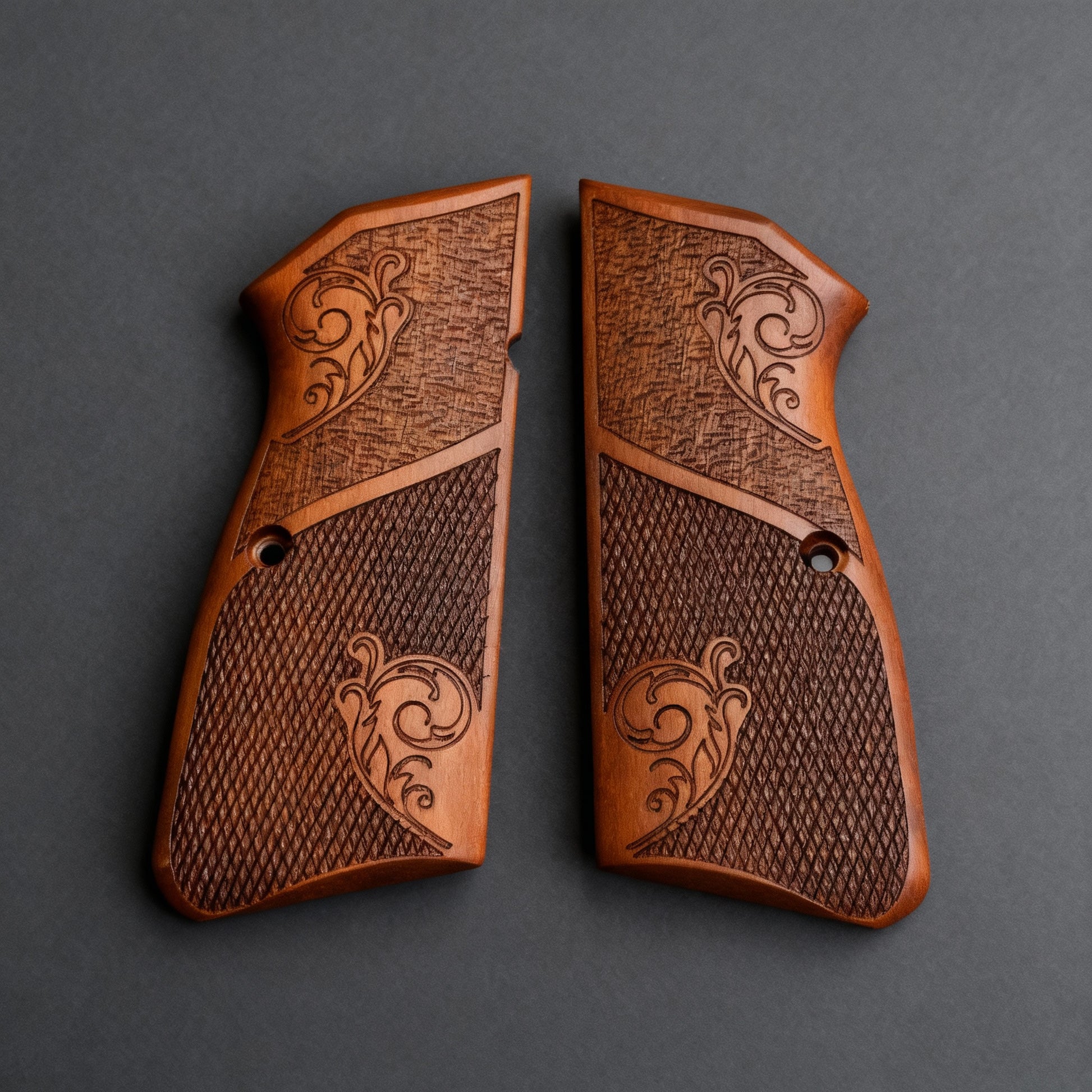 We strictly use high-grade, dense hardwoods such as Turkish Walnut, Rosewood, and exotic burls. Each grip is unique; the natural grain patterns ensure that no two pieces are exactly alike, giving your firearm a truly one-of-a-kind identity.
