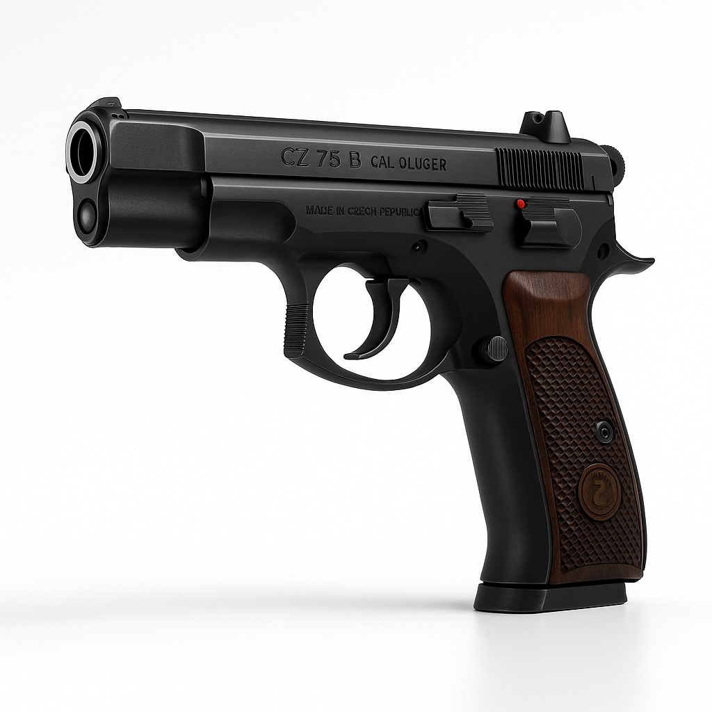 Handmade walnut grips. CZ 75 B compatible. Full fish-scale pattern. Recessed CZ crest. Satin oil finish. Ergonomic contour. Suited to U.S. and Canadian shooters.