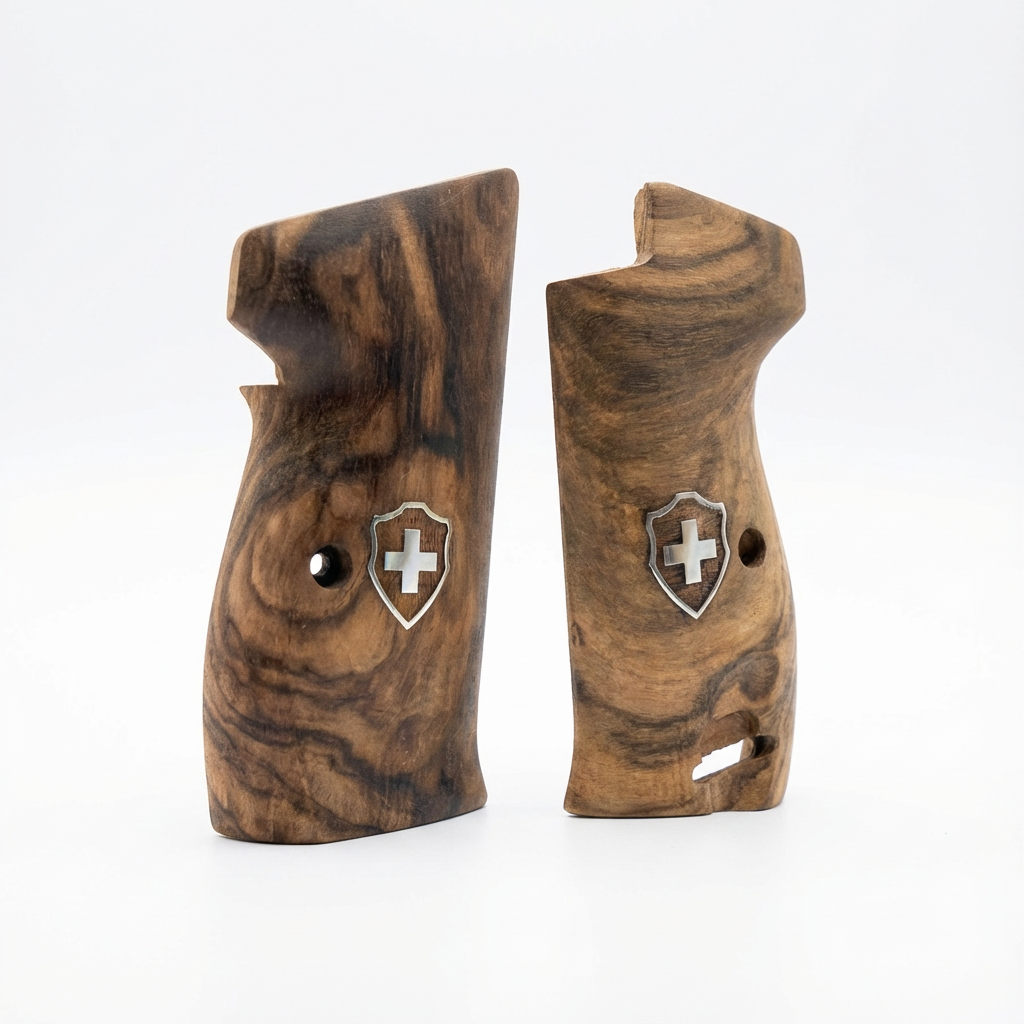 We strictly use high-grade, dense hardwoods such as Turkish Walnut, Rosewood, and exotic burls. Each grip is unique; the natural grain patterns ensure that no two pieces are exactly alike, giving your firearm a truly one-of-a-kind identity.